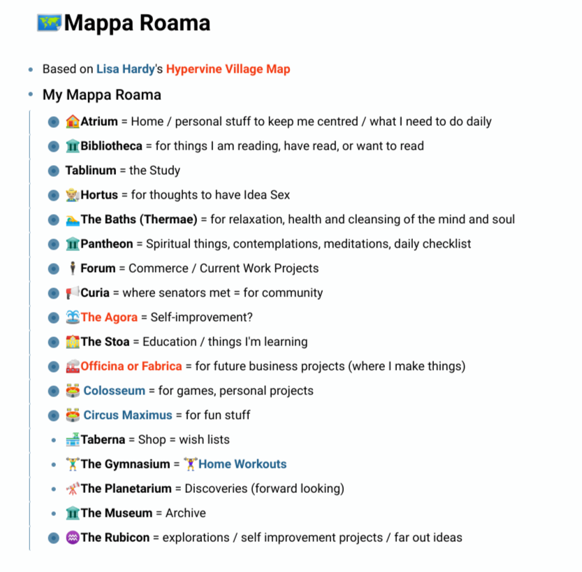 The "Tablinium" is my Study, where I keep an overview of all learning projects and active Personal Development projects, as well as a longlist/wishlist of future stuff to learn.