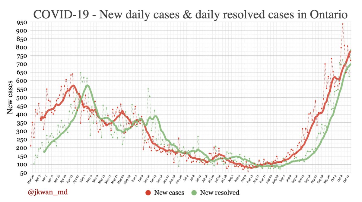 †Resolved = 14 days post-symptom onset if not hospitalized/deceased, does not account for any potential persistent symptoms or complications. #LongCovid#COVID19#COVID19ON#covid19Canada