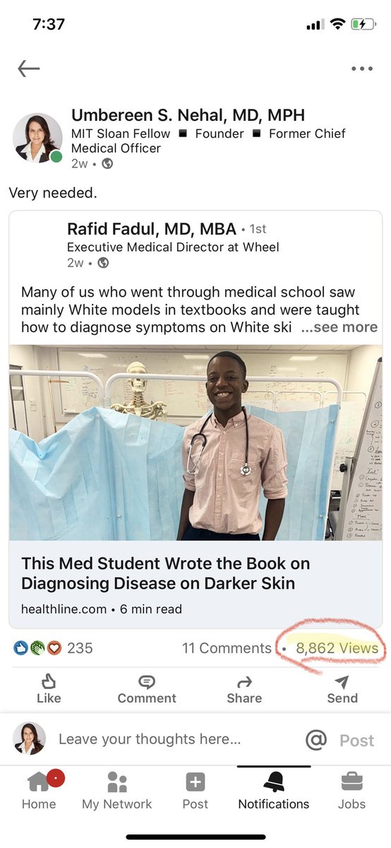 Yes, some of my @LinkedIn posts get >12K views. But the ones on physician suicide? ~200