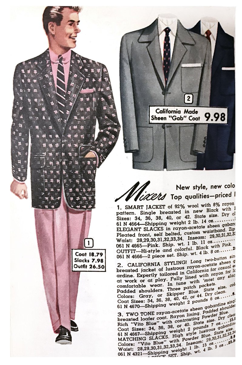 Now the idea of a 'leisure suit' started on the West coast of America after the war. Days were warm, life was relaxed, it was the atomic age so a more deconstructed kind of jacket worn with chinos seemed a better fit for those mid-modern times.