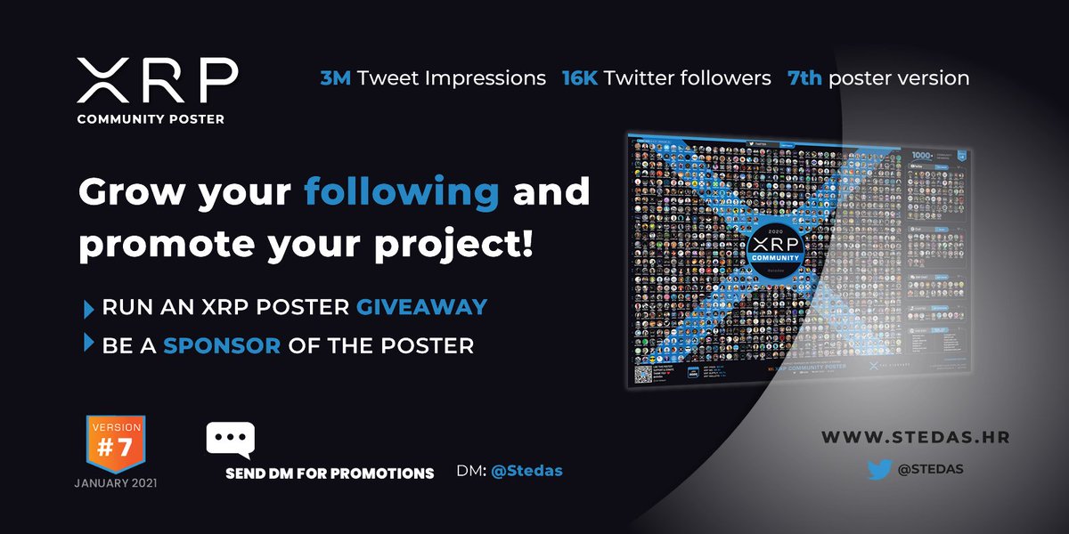 ➡️Purchase "X" amount of XRP Community Posters and give them as a reward to your loyal buyers or followers, e.g. users need to retweet or like a post to enter the giveaway.