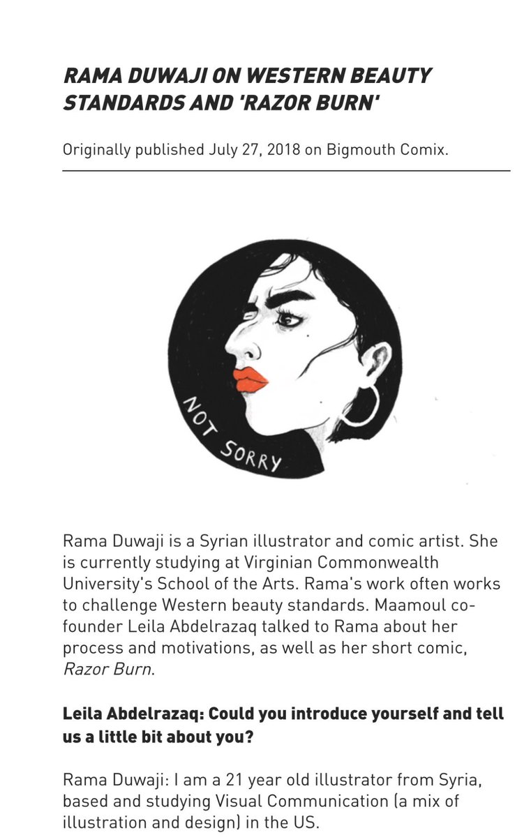 “Rama Duwaji is a Syrian illustrator and designer with a BFA in Communication Arts, based between Dubai and Washington, DC.