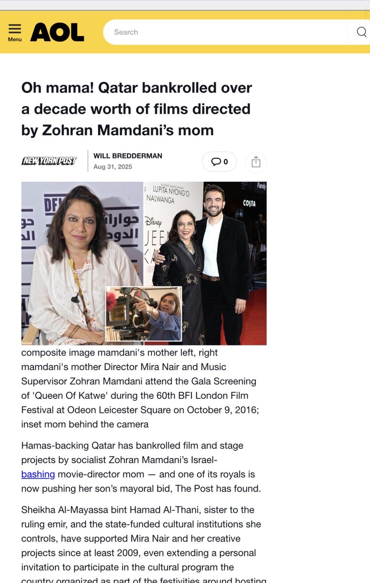 Mira Nairs Qatar work was funded in part by the far leftist Ford Foundation. And Qatar also bankrolled over a decade worth of films directed by Zohran Mamdani’s mom.