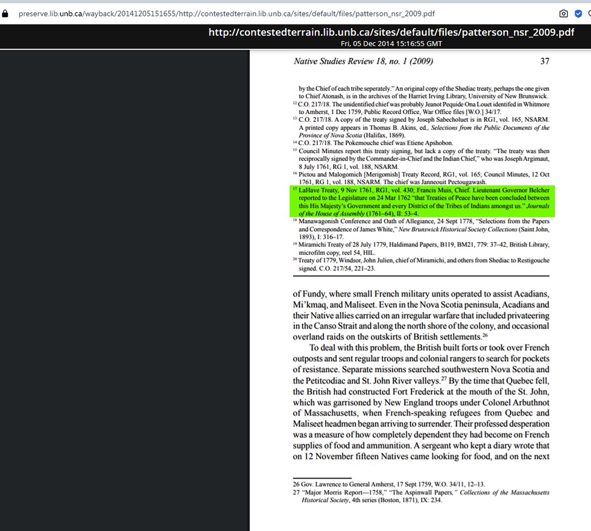 "Marshall’s lawyers abandoned his reliance upon the Treaty of 1752, and switched his focus to the Halifax Treaties of 1760-61.[5][7]" preserve.lib.unb.ca/wayback/201412…