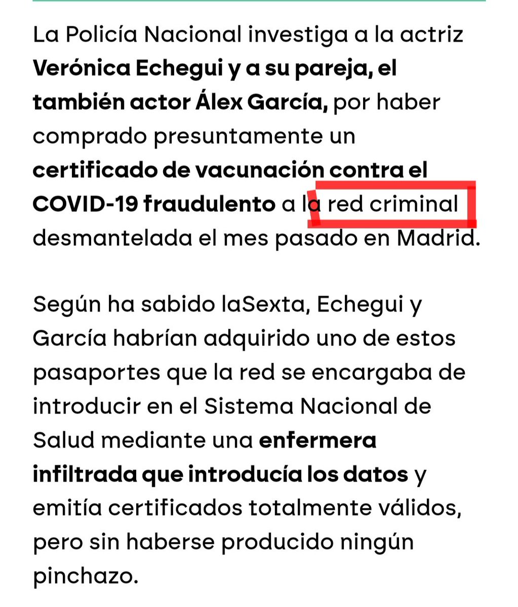 Muchos de los Medios que esta semana se han dedicado al lacrimógeno obituario de la gran actriz Verónica Echegui se dedicaron hace apenas 3 años a su acoso y crucifixion pública, sólo por no haberse vacunado y haber falsificado el pasaporte nazi para poder seguir con su vida