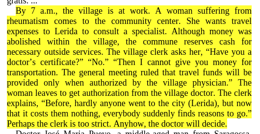 CNT officials *bragged* about the monopsony power that rural collectives wielded, such that while individuals *could* opt out of their village's collective, they were basically completely fucked if they did, with no options, no one else they could exchange with.