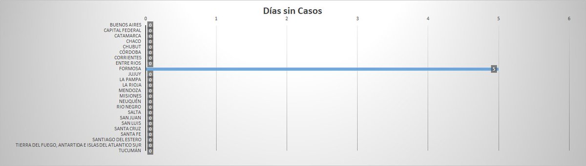 También muestro cantidad de días sin casos por provincia y provincias con casos y casos durante la epidemia.