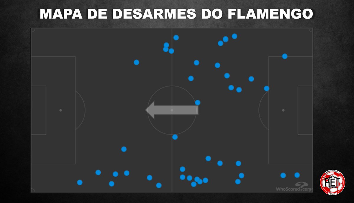 Com ajuda de Vitinho, o Flamengo controlava as ações no 1T. Mas outro fator importante que permitia isso acontecer eram as roubadas de bola no campo ofensivo. Foram 12 no jogo inteiro, sendo dois jogadores se destacando no quesito: Filipe Luís (4) e Thiago Maia (4).
