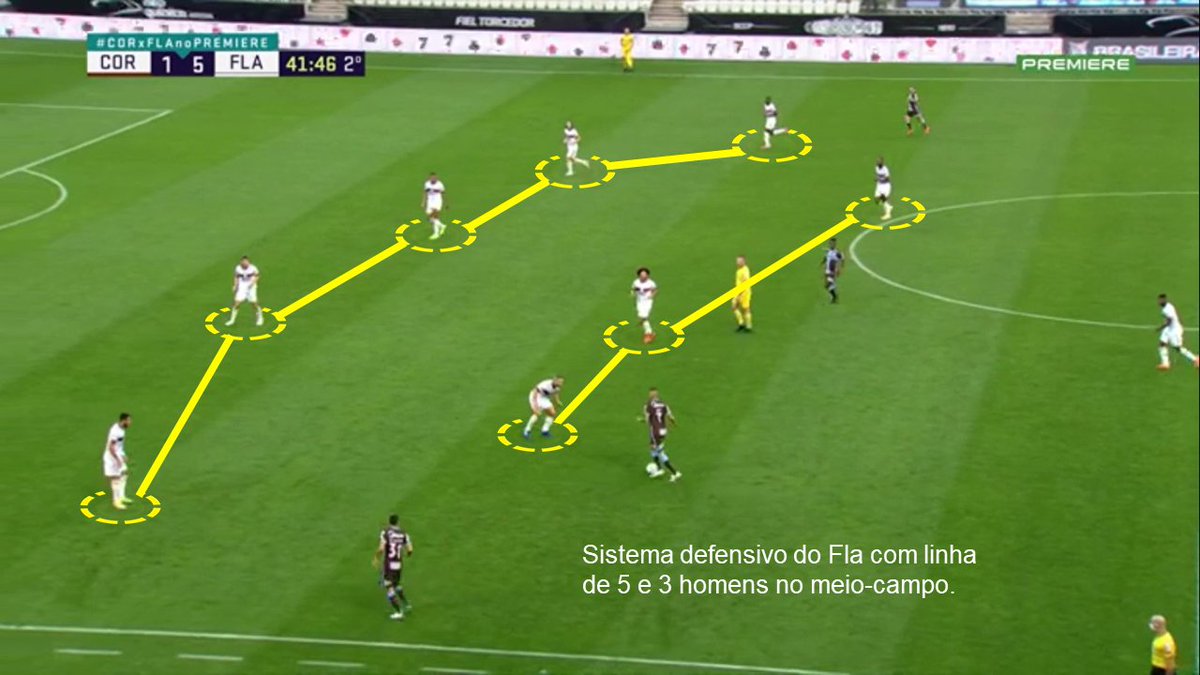Pele que eu me lembre, é a primeira vez que o Flamengo se defende com linha de 5 com Domènec e o mais bacana, sem necessariamente precisar de 3 zagueiros de ofício em campo.