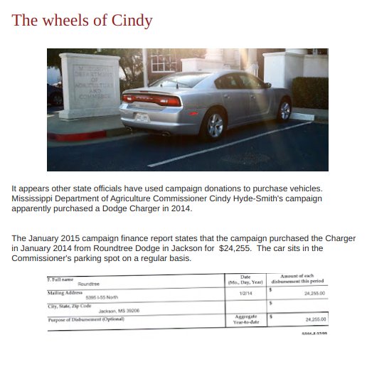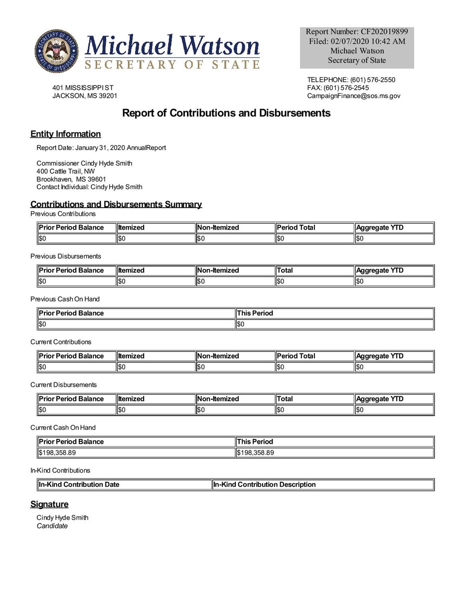 Incidentally, Cindy still has nearly $200,000 she keeps in a state campaign fund that she segregated before Mississippi's campaign finance ethics reform took effect in 2018. 12/