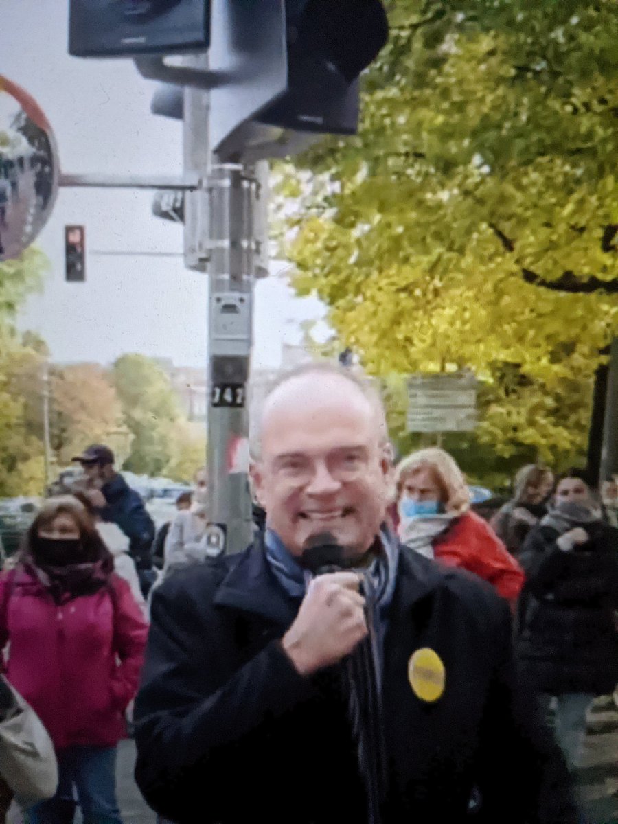 Macht Videos. Darin sagt er Sachen wie: "Die gehen für die Maske über Leichen!", die "Impfopfer" der "Bill Gates Impfung" die "in ein paar Wochen" kommen würden als Coronaopfer gerechnet.