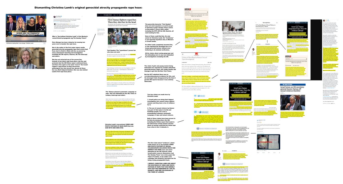 again, Christina Lamb is a professional liar as I meticulously detail in the infographics attached and also linked below in higher res, in this piece zeisquirrel.substack.com/p/rape-hoax-re… and here: x.com/zei_squirrel/s…. She literally claimed she saw and verified non-existent video and photo footage of rape and fetuses cut from wombs. All of this was debunked as a genocidal hoax. Lamb is a depraved atrocity propagandist.