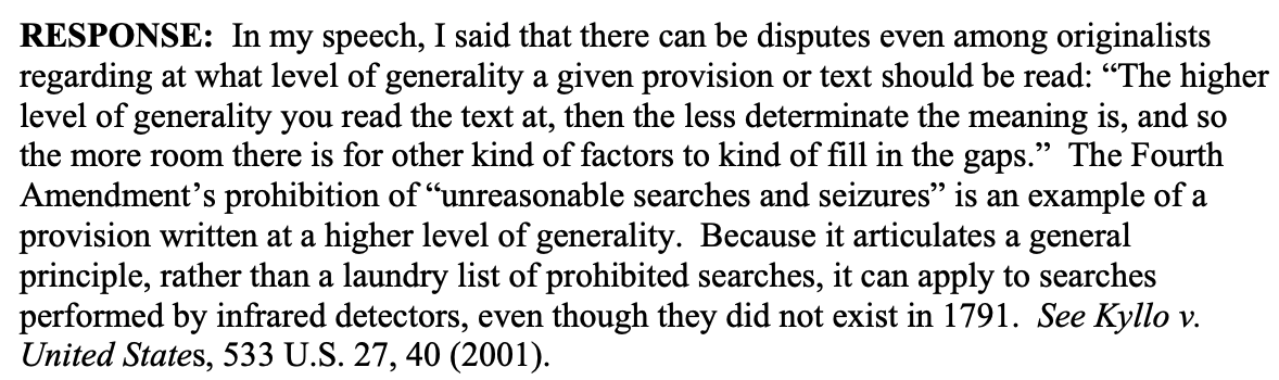 3. Finally, I haven't seen Barrett endorse a particular standard for reversal, like "demonstrably erroneous." My sense from her later writings is that the most plausible reading controls. But this is an inference from her view that original meaning *is* the law.
