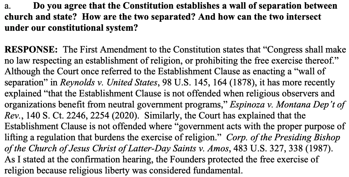 Seems to support @mjschwartzman's read of Barrett's leanings on the religion clauses: