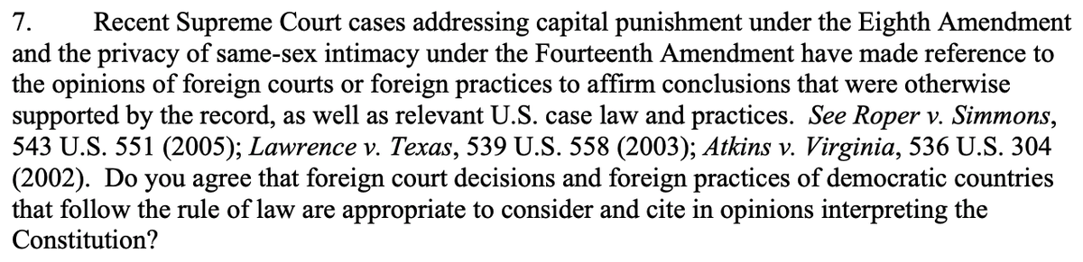2. In 2010, Barrett strongly indicated that she rejects the Charming Betsy canon, that is, "the rule that where one