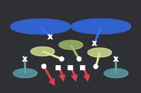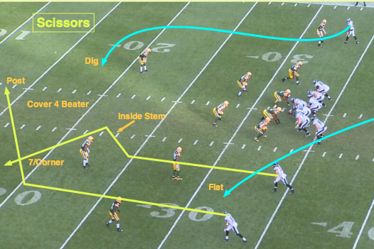 o scissors concept também é ótimo para atacar uma cover 2, pois ataca uma zona funda com 2 WR se cruzando fazendo o Safety ficar sobrecarregado