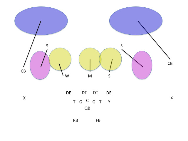 a parte mais essencial dessa cobertura é a leitura dos safeties e corners e para que lado eles vão correr para fechar os buracos, chamamos isso de 2-1 read