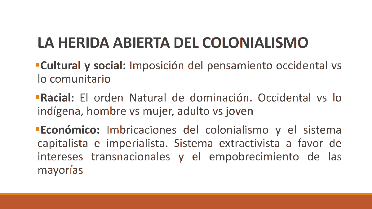 “Finalmente, la dimensión económica: hay colonia porque existe un sistema extractivista que se lleva la riqueza de los pueblos originarios. Intereses económicos imperiales que se convierten en intereses transnacionales y significan un orden económico de opresión” #carlosaavedra