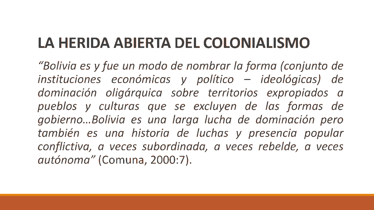 “En «Bolivia vemos la expresión del profundo daño del colonialismo y su reproducción en la república moderna que hace del racismo la ideología del Estado. El MAS interpela la herida colonial en 3 dimensiones” asegura @carsaavedra#compol
