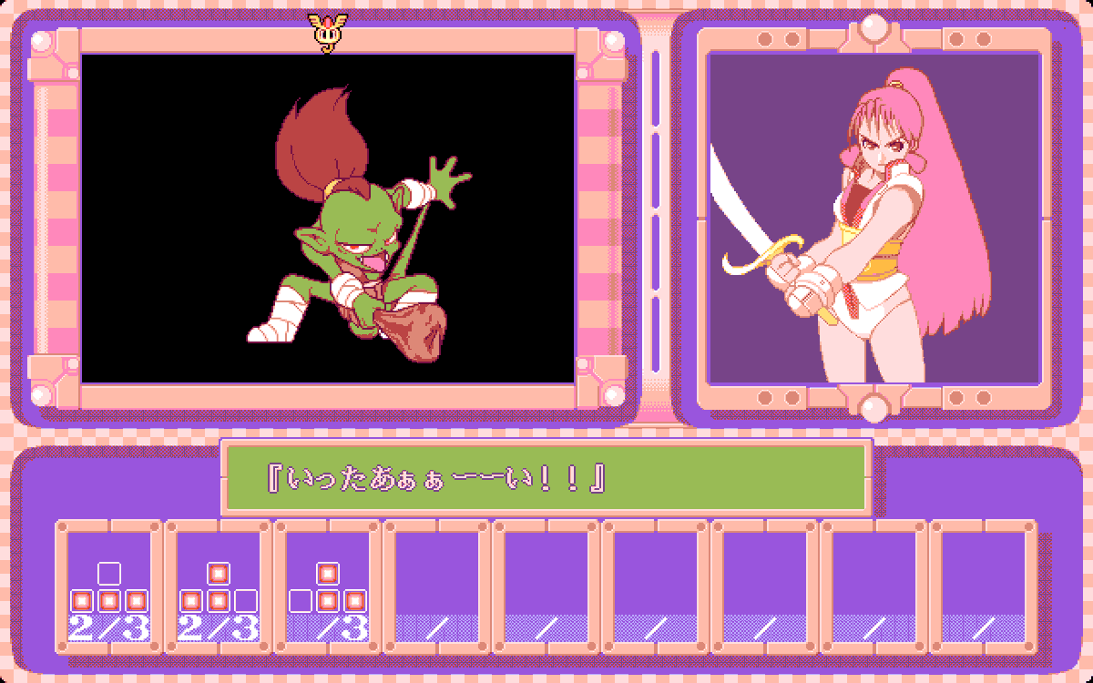 In 1995, Compile (yes, the company behind Puyo Puyo – they were one of the biggest companies on classic Japanese PCs!) made Battle Girl Saori, a short and *beautiful* visual novel / puzzle RPG with a magical girl theme. And bangin' tunes! It's free! (5/?) amusement-center.com/project/egg/cg…