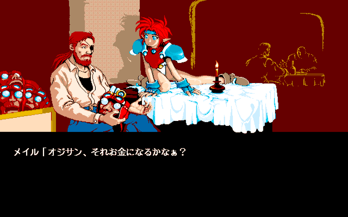 Popful Mail, the marvelous culmination of Falcom's action RPG platformers, is famous in the West for its Sega CD version – but it was originally on Japanese vintage PCs! And it's more than a little bit different! You betcha I'm playing this. (6/?) amusement-center.com/project/egg/cg…