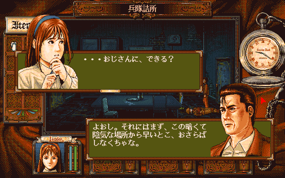 This PC-98 game, Wolf Team's supernatural mystery Tokyo Twilight Busters, is one of the most beautiful video games I have ever seen. And extremely unique: it's a graphic adventure / survival / RPG hybrid with real-time elements!? I insta-bought it. amusement-center.com/project/egg/cg… (8/?)