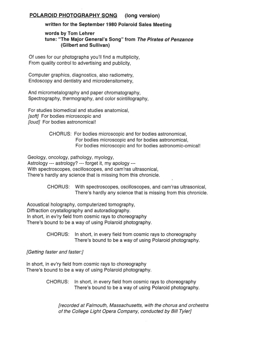 Do NOT MISS his Polarioid lyrics (recorded with an orchestra for a Polaroid sales meeting in 1980):