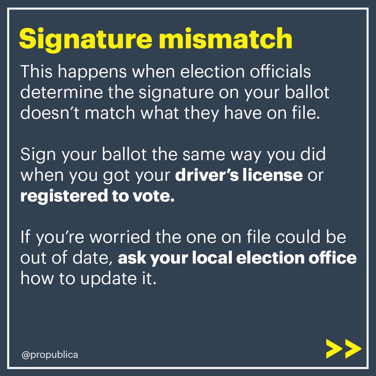 2/ Make sure you sign your ballot the same way you did when you got your license or registered to vote. Contact your local election office if you have concerns about the signature they have on file.
