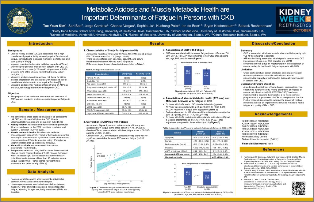 #MetabolicAcidosis & muscle metabolic health are important determinants of fatigue in persons with CKD (PO2064). #KidneyWk
