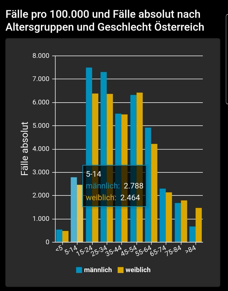 Wenn wir uns das in Österreich ansehen ist der Anteil der 5 bis 24 Jährigen bei den Erkrankten recht hoch. Warum wird noch immer behauptet Kinder seien sonwenig infektiös? Die Nackten Zahlen zeigen das Gegenteil. Die Frage ob die Schule ein Infektionstreiber ist, ist unklar.