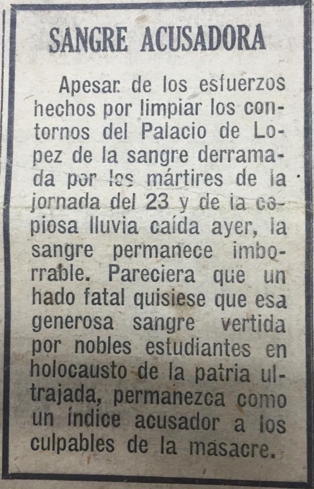 El 23 de octubre sigue siendo una fecha emblemática en Paraguay. Desde entonces se utilizó la muerte de estudiantes, en aquella triste jornada, como propaganda antiliberal. Lo mismo se hizo con otros episodios de nuestra historia: utilizarlos convenientemente para fines políticos