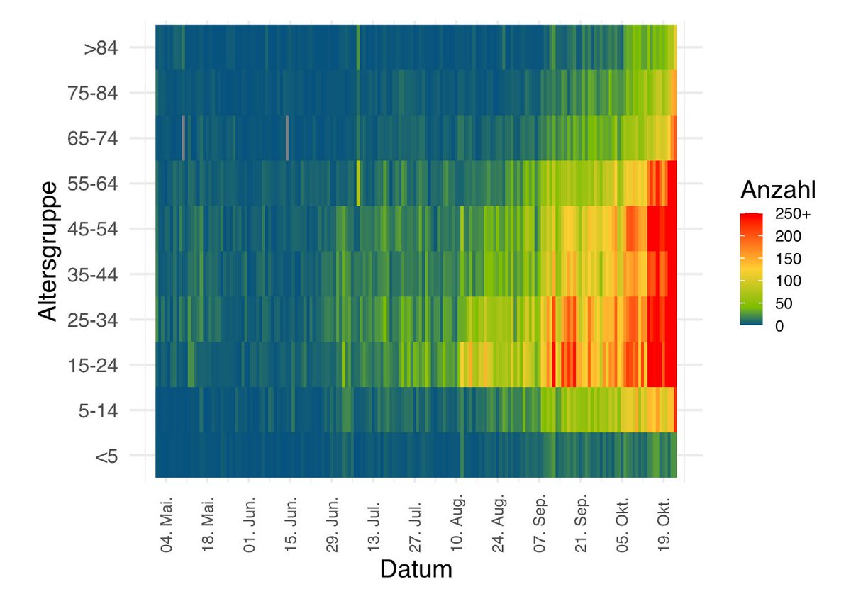 Inzidenzen nach Altersgruppen (da ist wohl auch wieder eine weitere Skalenspreizung notwendig)