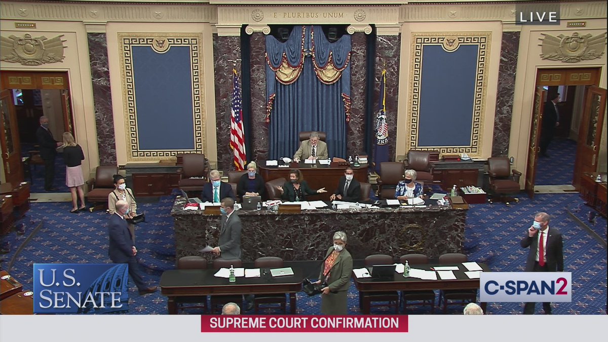 Senate NOW voting on McConnell motion to proceed to legislative session ahead of today's Barrett nomination debate. Simple majority is needed.