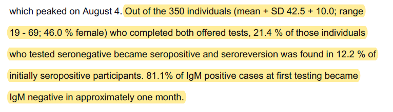7. The other astounding outcome of this study is rapid rate of disappearance of positive antibody test results in individuals who were tested twice, about 1 month apart. This implies a potentially very significant underestimate of virus spread through antibody tests worldwide.