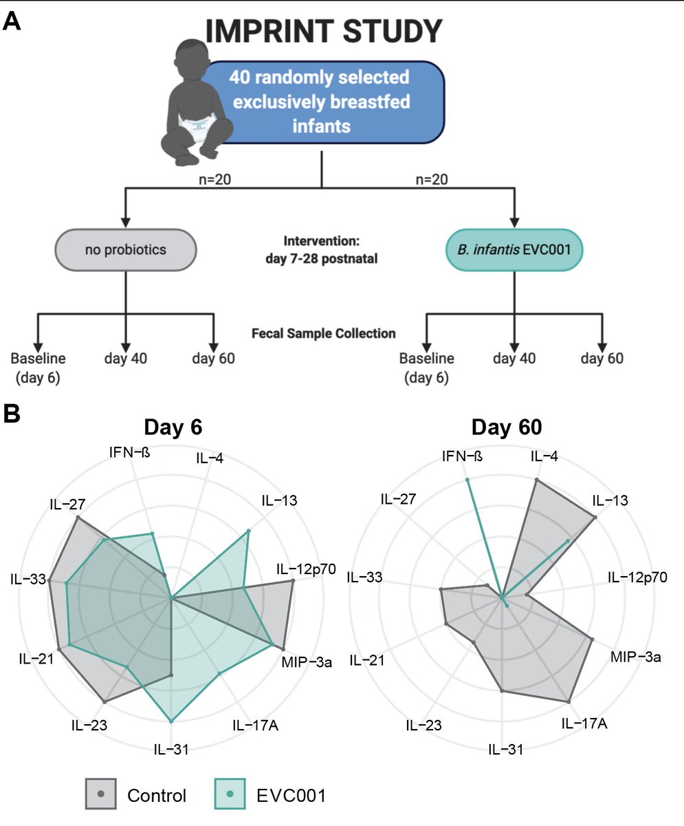 4) Together w @EvolveBio a Bifido. infantis EVC001 supplement was given to breastfed infants that silence intestinal inflammation (IL-17, -4) and induce intestinal IFNb