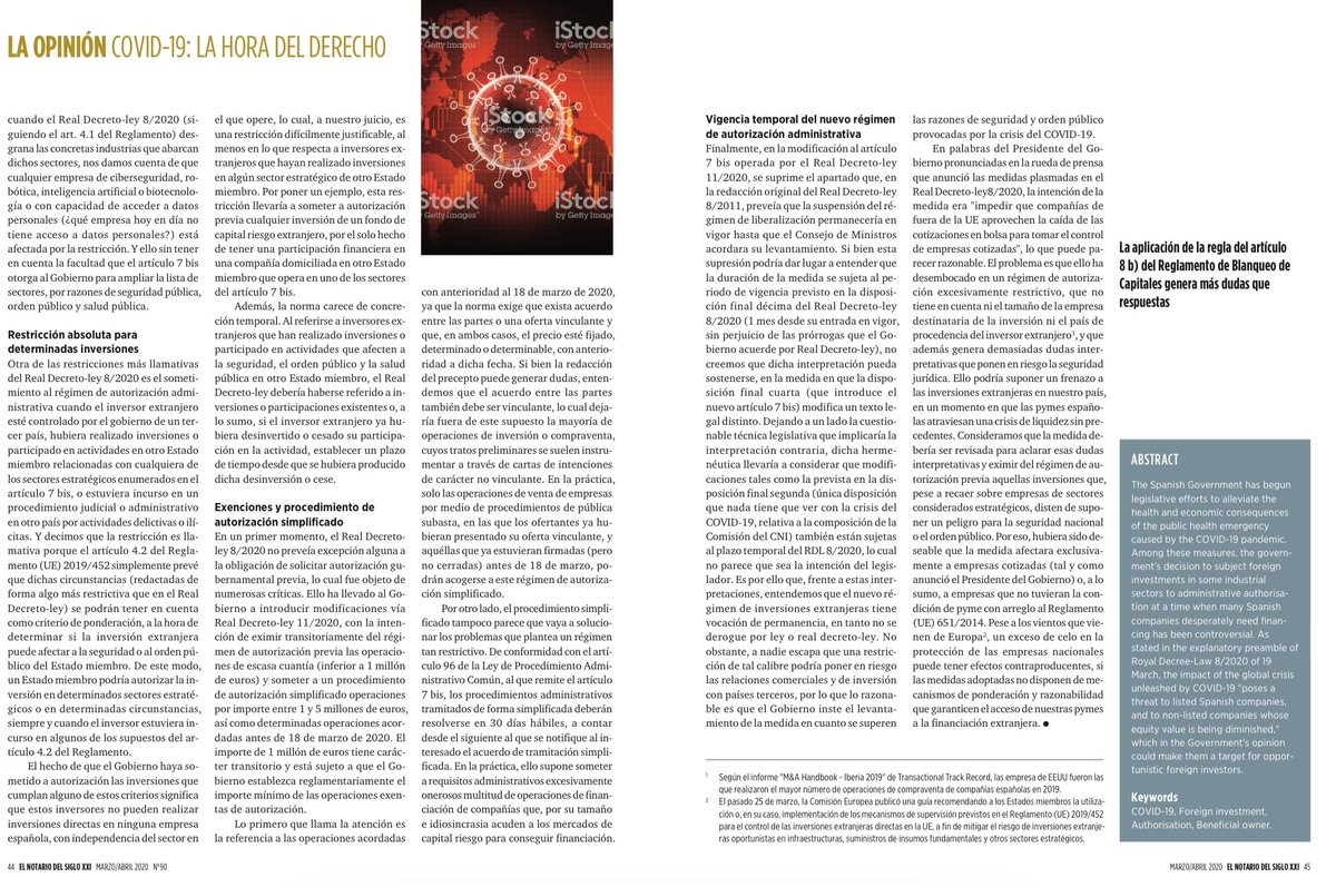 Una reflexión crítica sobre el nuevo régimen de autorización de inversiones extranjeras, en el último número de la revista @elnotarioSXXI
