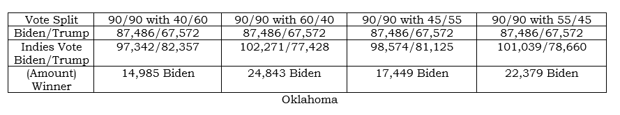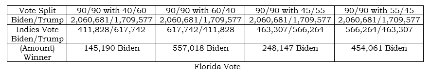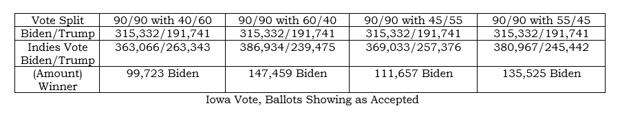 Oh and it is 90% party's vote to the party's candidate, Indies split 40/60 or 45/55.