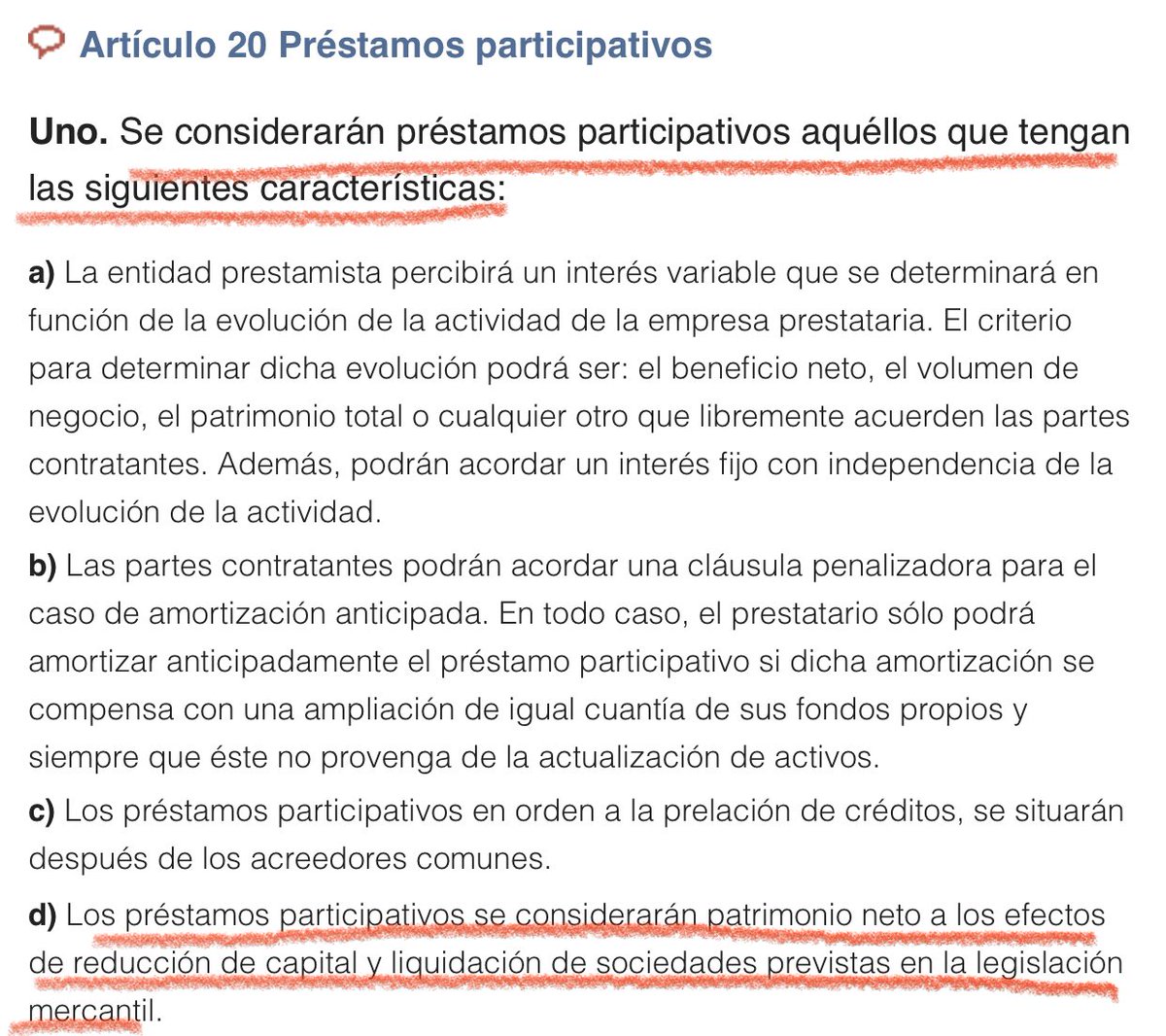 Además, ya disponemos de un instrumento que se utiliza bastante en la práctica para fortalecer los fondos propios a los efectos de la obligación de disolver la sociedad por desequilibrio patrimonial (el mencionado art. 363.e) LSC): el préstamo participativo