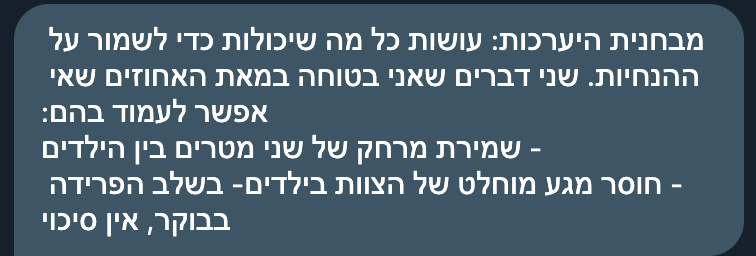 מתוך הודעה לצוות ששלחה מנהלת בית ספר יסודי בירושלים. היא ממחישה, לטעמי, עד כמה מדובר במשבר אנושי, ועד כמה צוותי ההוראה וההנהלה מנסים לעשות כל מה שהם יכולים, בתוך אי ודאות רבה מאוד