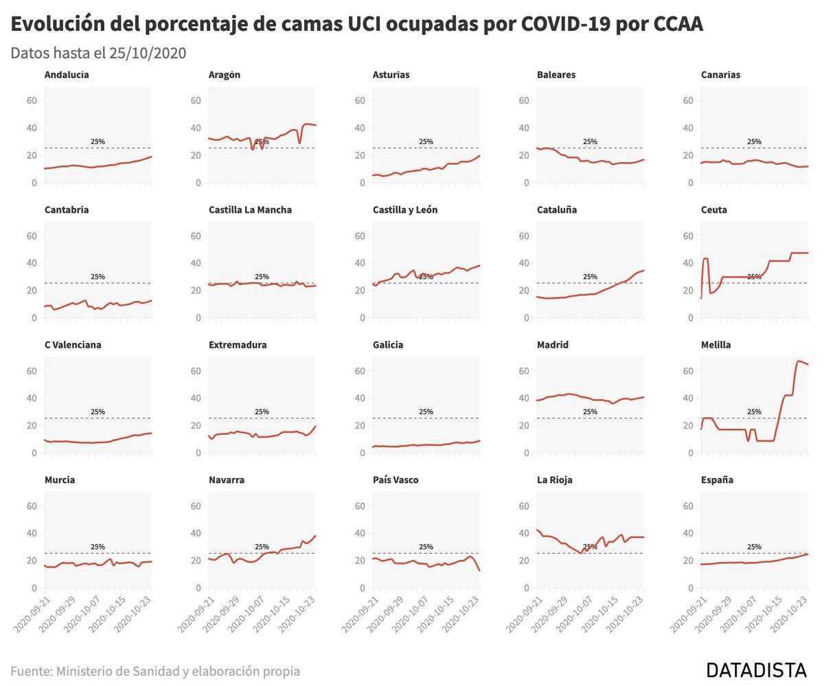Ocupación de camas UCI por pacientes COVID-19 con respecto al total de ingresados en UCI