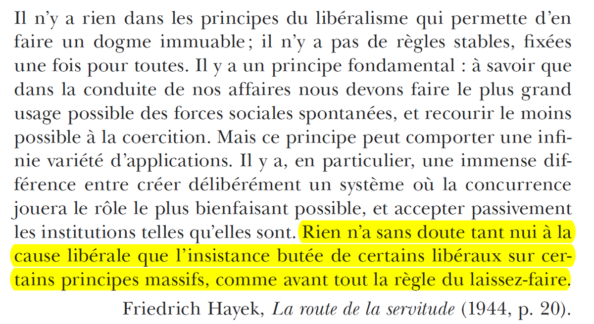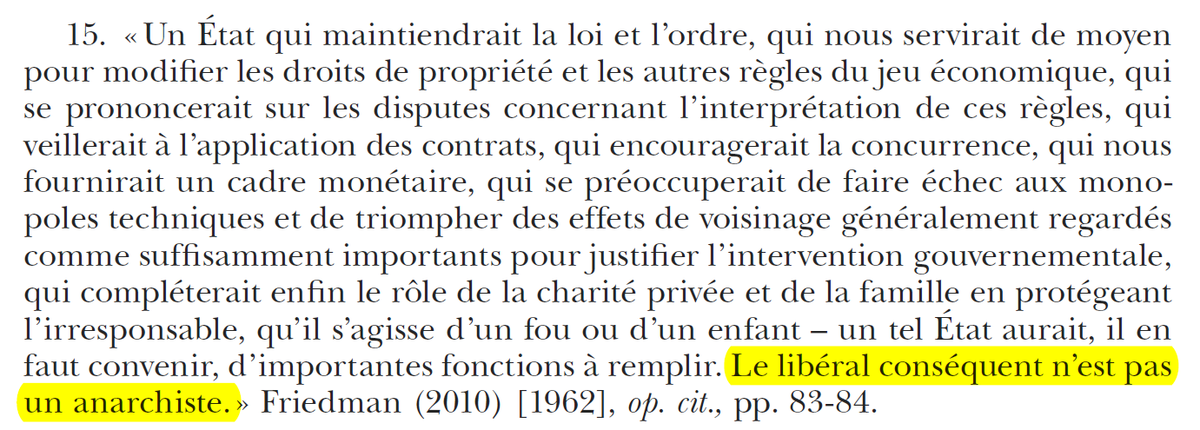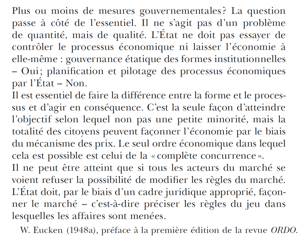 Friedman, Hayek et Eucken (fondateur de l'école ordolibérale) ne sont pas tous d'accord entre eux. Mais chacun admet que l'ordre marchand ne peut exister sans une intervention de l’État et que le marché n'est pas un état de nature mais la conséquence d'institutions sociales.