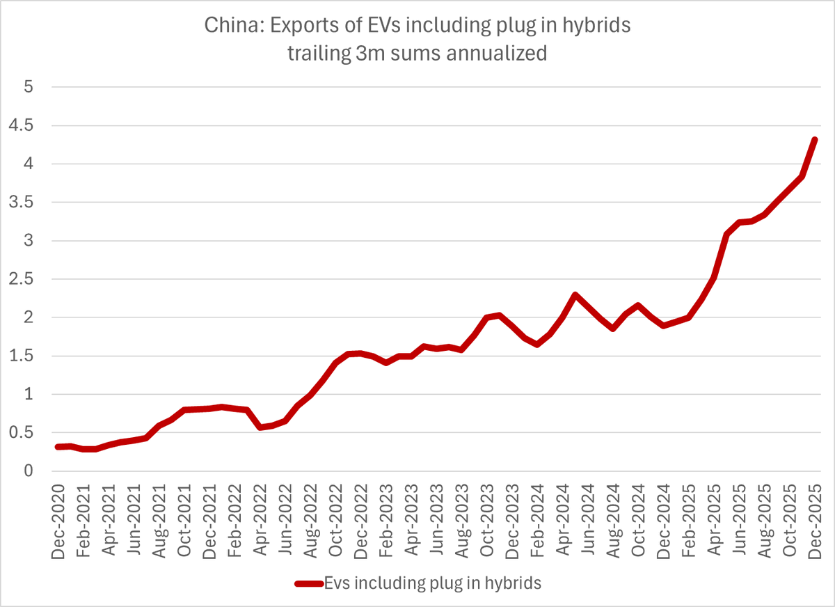 As an aside the pace of China's (N)EV exports doubled over the course of 2025 -- huge, huge growth ... China is still a source of global supply there, not a source of global demand