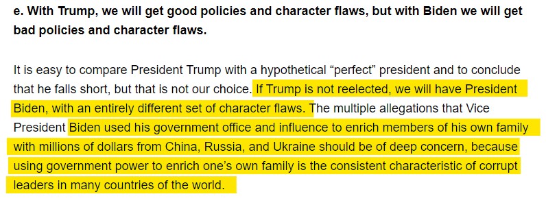Grudem then says that it is Biden who has "an entirely different set of character flaws . . . used his government office and influence members of his own family."