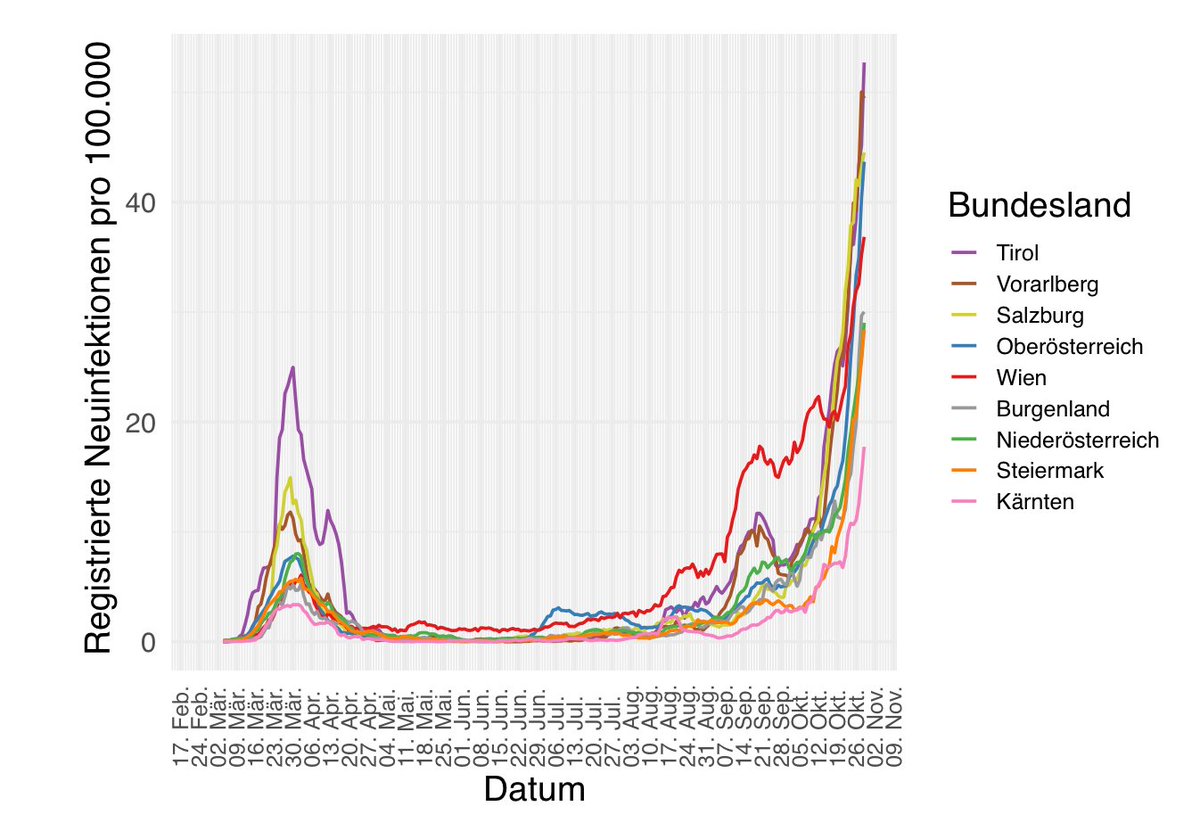Die 10 Bezirke mit der höchsten Inzidenz. Zur Erinnerung. Die Ampel schaltet bei 100 auf rot.