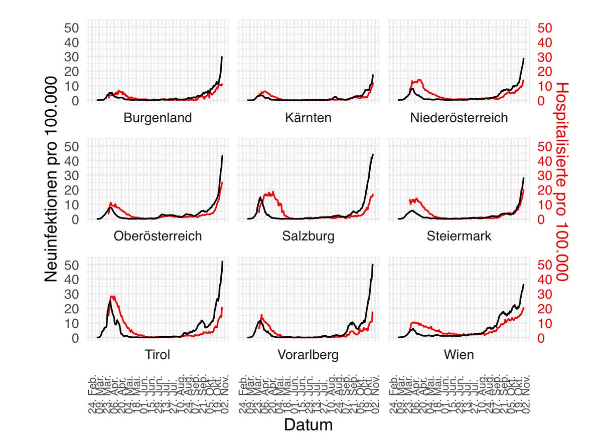 Neuinzidenzen und Hospitalisierungen insgesamt