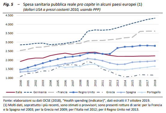 Il dato Gimbe è grezzo, vero, ma trova tutta una serie di altre conferme. L’Ufficio parlamentare di bilancio ha calcolato in quasi 2500$ la spesa *reale* pro-capite nel 2010, calata a circa 2250 nel 2013 per attestarsi su quel livello da lì in avanti 5/8 upbilancio.it/wp-content/upl…