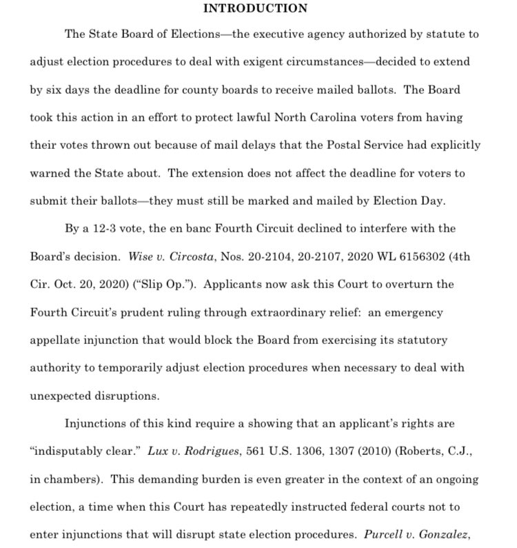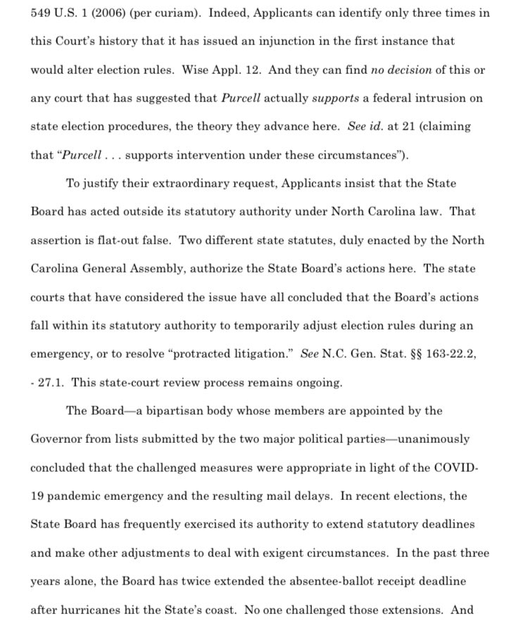 It’s frustrating to link to something as misleading as this Gorsuch dissent, unbalanced by any words from the justices who voted to deny the application. Gorsuch doesn’t even take cognizance of the delays in USPS deliveries, which is what the whole case is about.