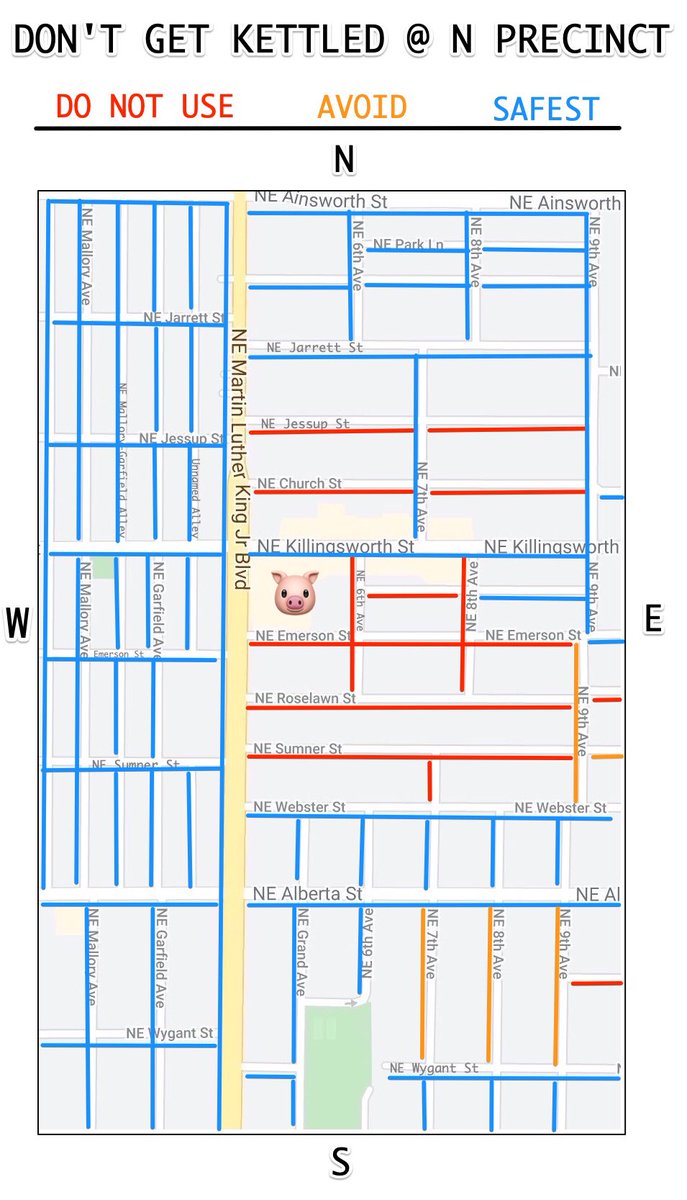 Looking at maps and location scouting in advance is always time well spent. In person is best but online via Google earth is still helpful. @pdxprotestpdx has circulated maps made by comrades for frequent protest areas.