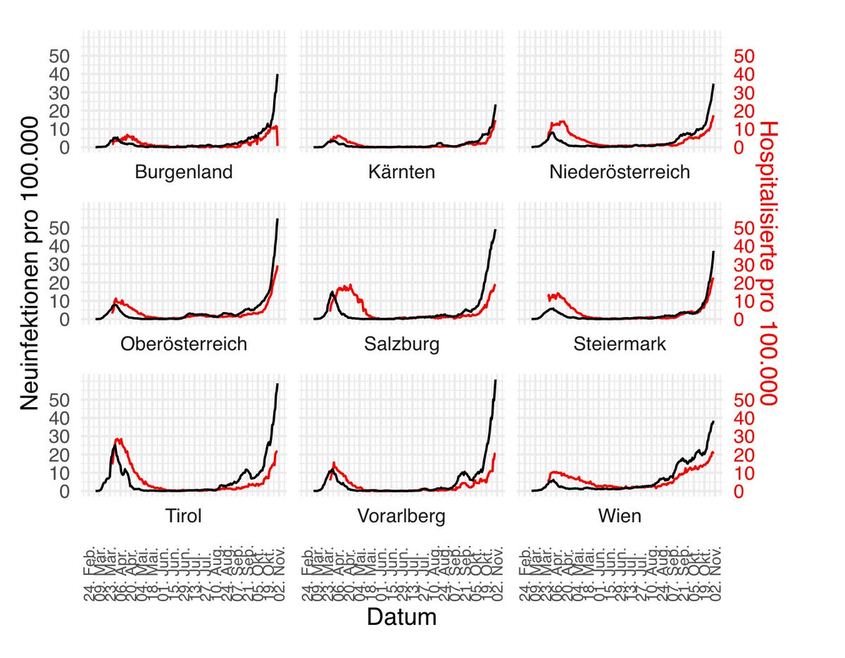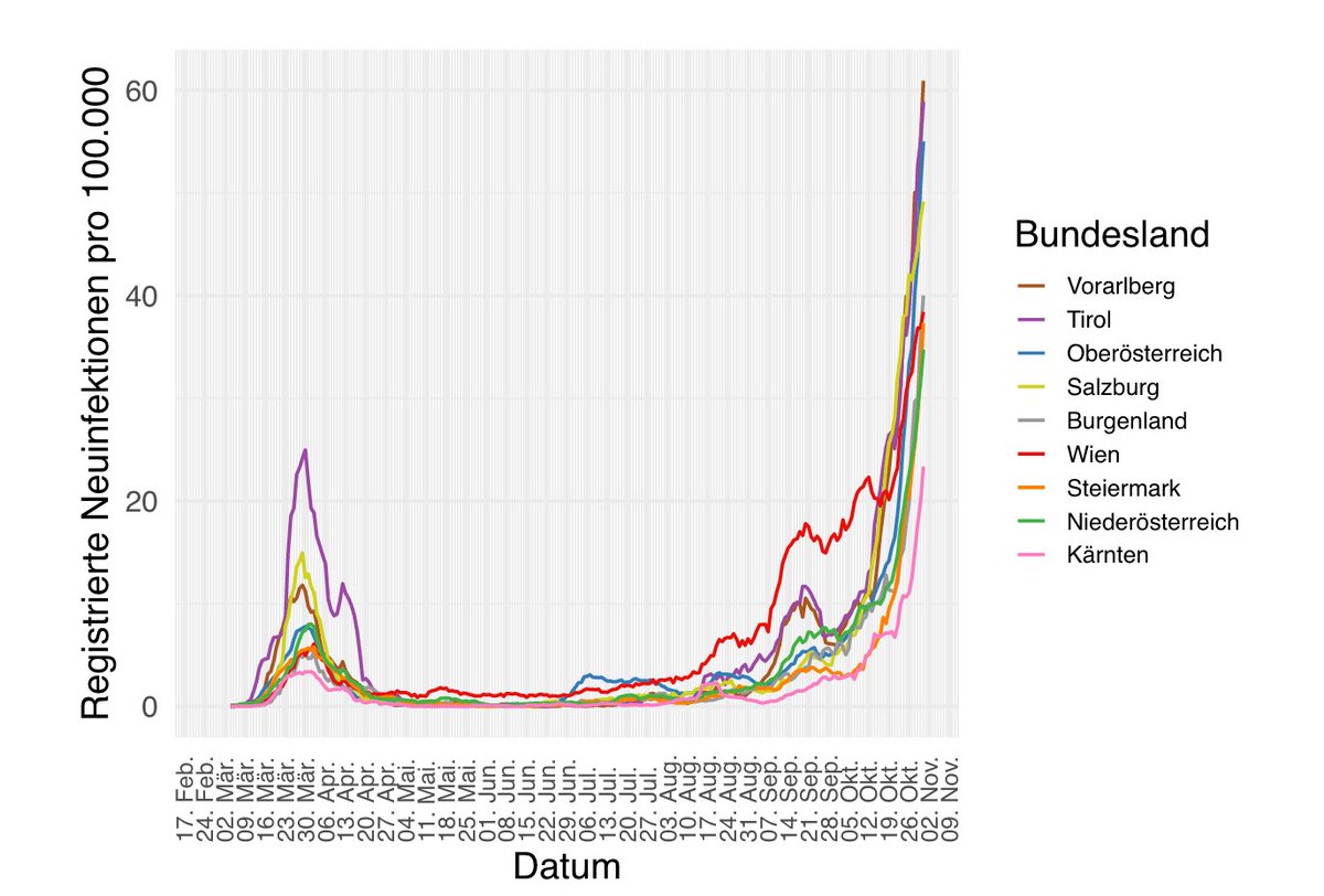 Neuinzidenzen nach Altersgruppen. Österreich brennt lichterloh.