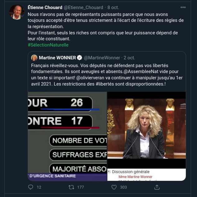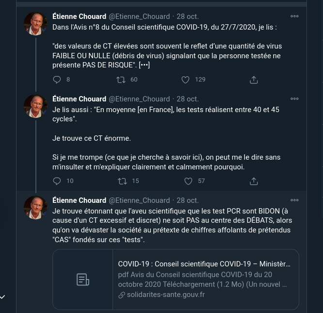 Je me suis demandé ce qu'Étienne Chouard pouvait bien raconter sur le Covid. Je suis allé voir sur son profil. Et j'ai plus ou moins trouvé ce que je craignais.